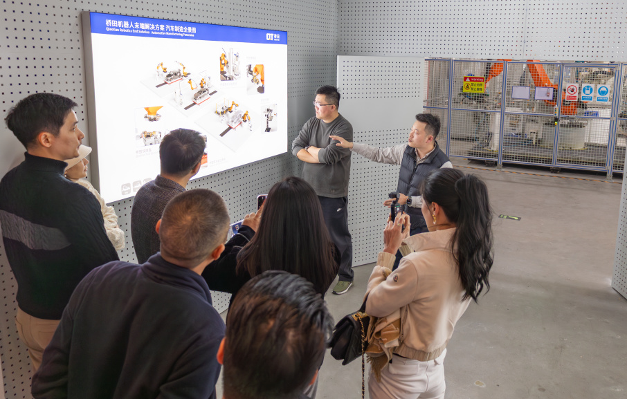 Prior to the event, Liu Xiaoping led the students on a tour of the laboratory and exhibition hall. Through live demonstrations of robotic arms, the students gained an in-depth understanding of the application workstations and operational processes of end-of-arm tools (EOAT) for robots. Subsequently, they visited the assembly and manufacturing workshop to observe on-site the refined management and collaborative models in the production process.